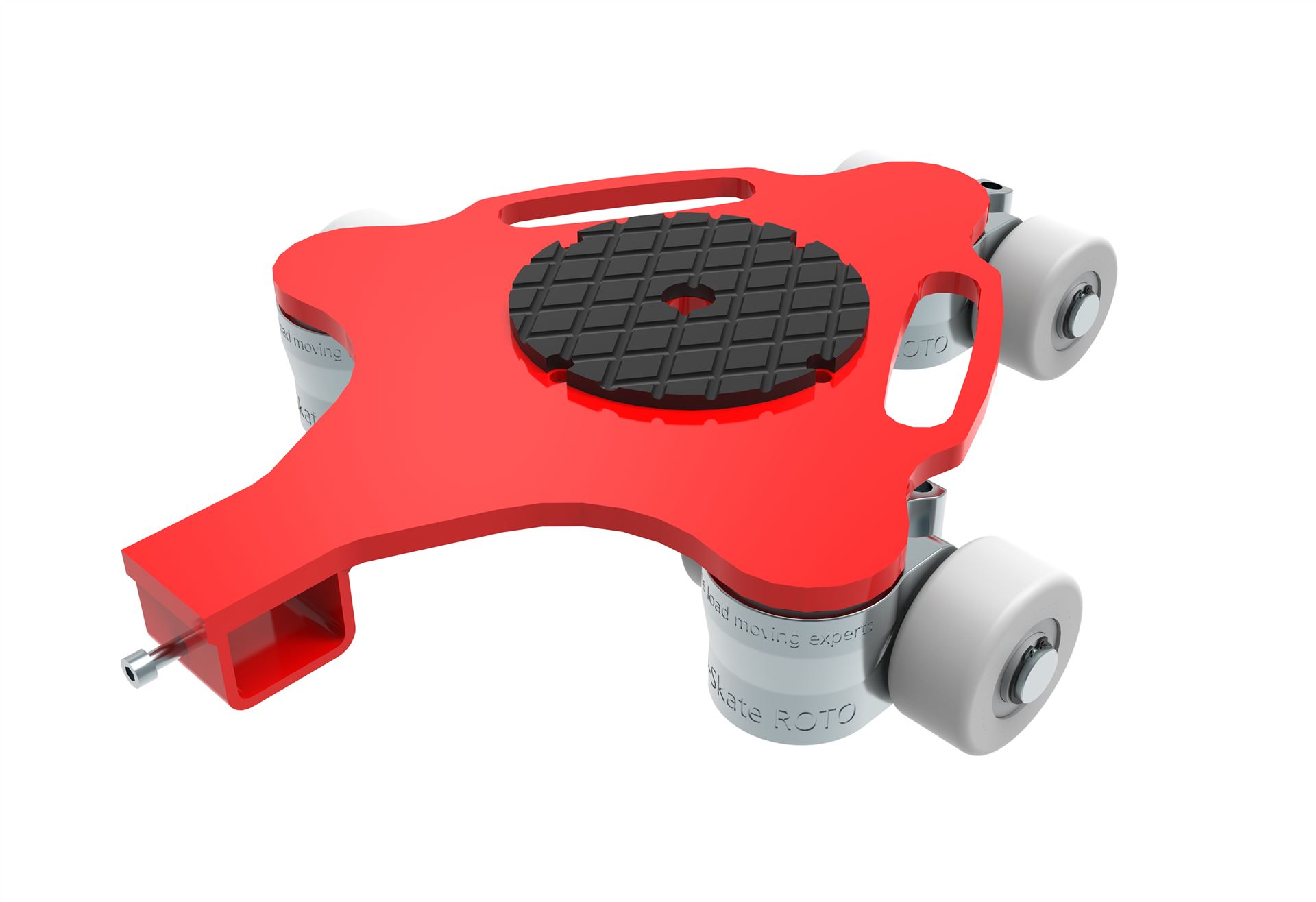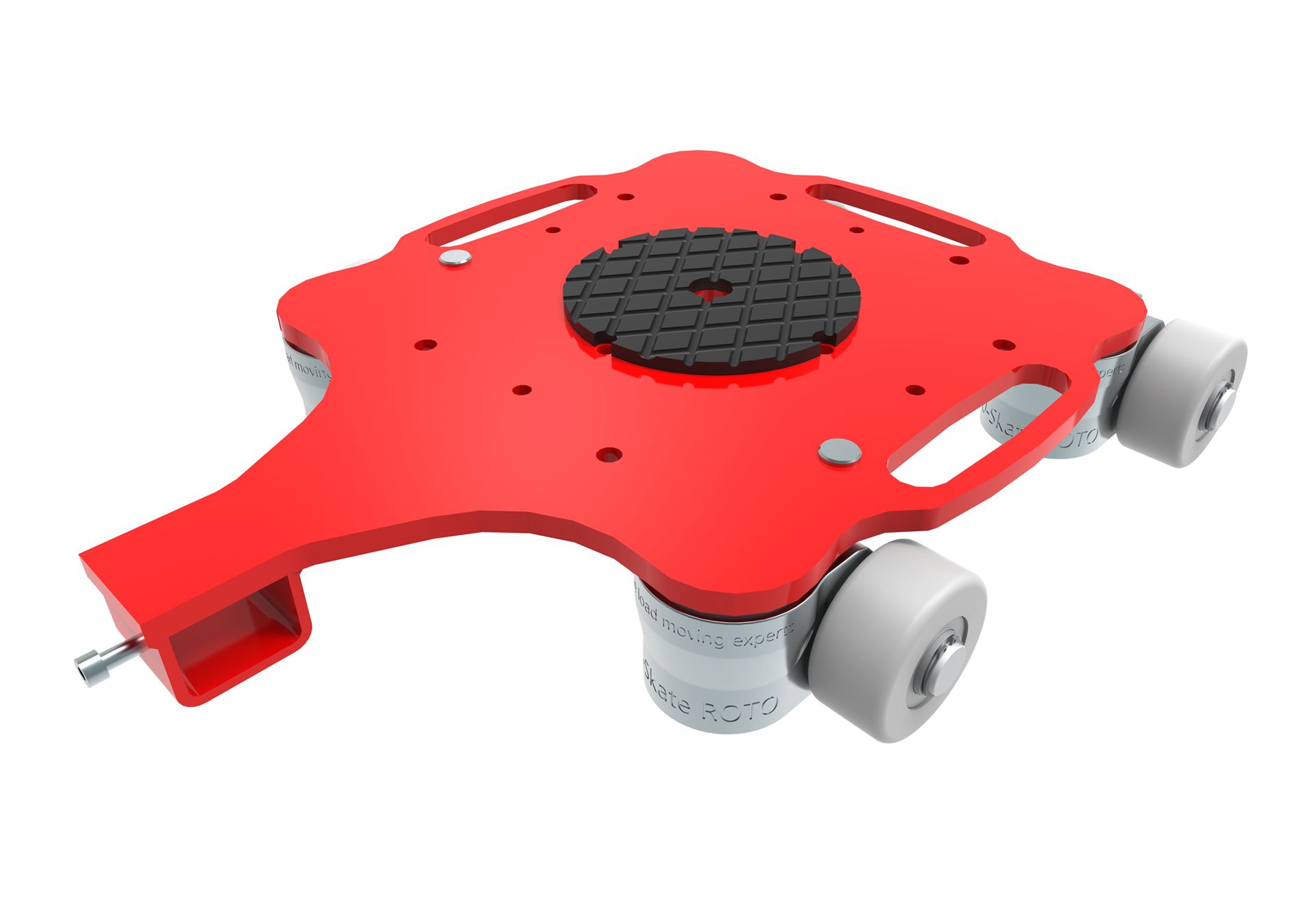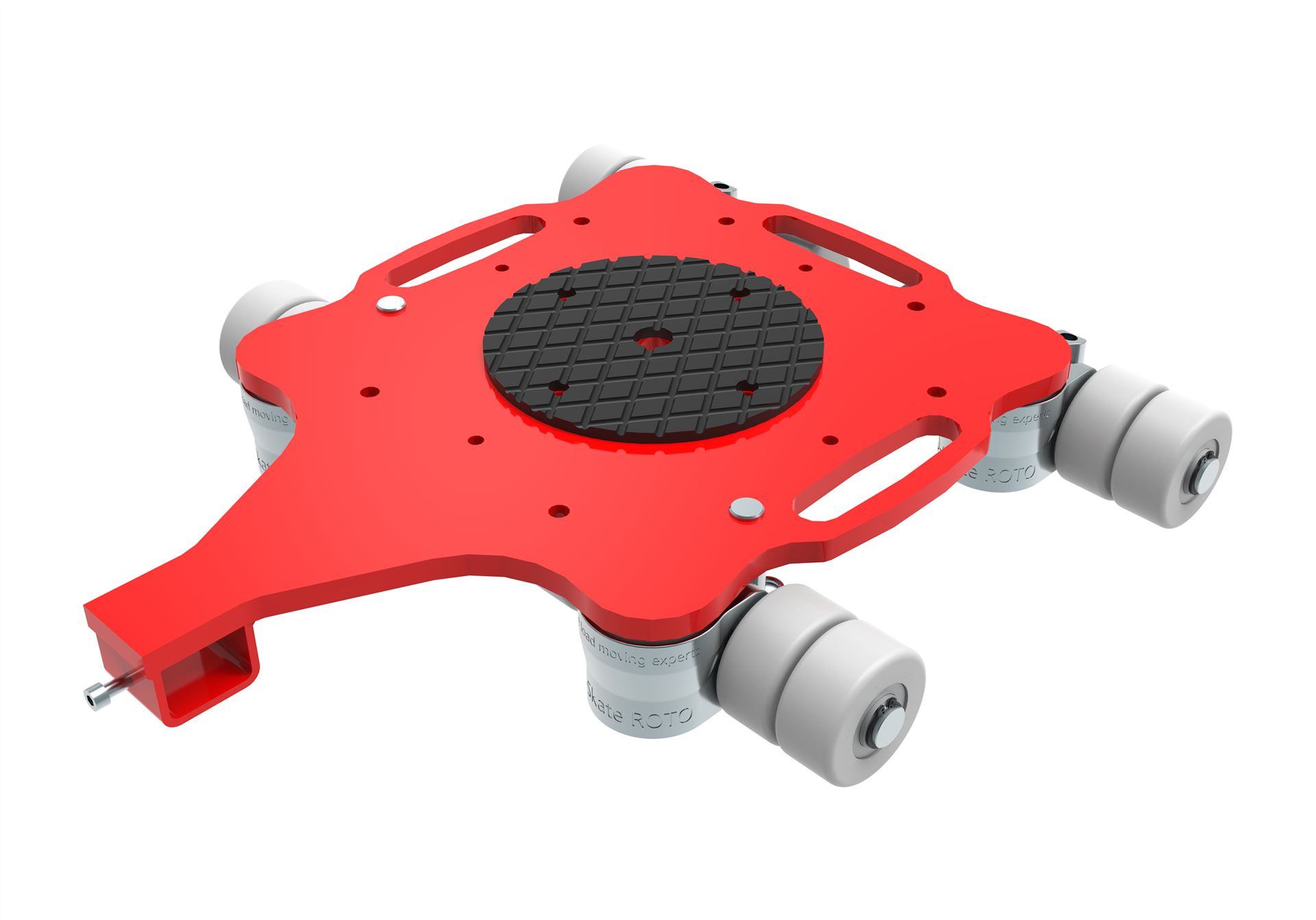 Schwerlasttransportfahrwerk (360°) für den professionellen innerbetrieblichen Schwerguttransport auf sauberen und ebenen Böden. Ausführung mit einzeln drehbaren hochwertigen Polyurethanrollen bzw. Nylonrollen (abriebfest und nicht markierend, für alle glatten Böden geeignet), rutschfestem Waffelgummibelag und Aufnahme für Verbindungsstangen oder Deichsel in verschiedene Varianten. Multifunktional und flexibel durch Fixierung der Radaufnahme mittels Steckbolzen. Dadurch wie ein starres Fahrwerk verwendbar, mit zusätzlichem Drehteller ausgerüstet wie ein lenkbares Fahrwerk verwendbar.